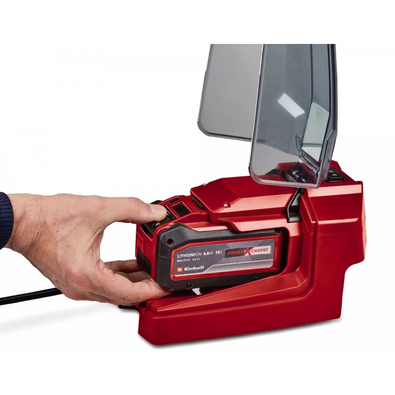 Die Einhell Akku-Schmutzwasserpumpe GE-DP 18/25 Li ist ein Allrounder, wenn Klar- oder Schmutzwasser ausgepumpt werden soll. Die kraftvolle Pumpe ist Teil der Einhell Power X-Change Familie, in der Akkus, Ladegeräte und Systemgeräte flexibel miteinander kombiniert werden können. Dank Akku kann die Schmutzwasserpumpe flexibel, unabhängig von einem Stromanschluss, eingesetzt werden. Der Akku wird durch die spritzwassergeschützte, robuste Akku-Box geschützt und kann dank Wandhalterung und Befestigungshaken an Wänden, Regenfässern, Zäunen und Co. aufgehängt werden. In der Akku-Box integriert ist eine Kabelhalterung für das 5 Meter lange Verbindungskabel, das es der Pumpe ermöglicht, bis zu 4 Meter tief einzutauchen. Der 153 Watt starke Motor ermöglicht eine maximale Förderleistung von 7.500 Litern pro Stunde mit einem max. Förderdruck von 0,5 bar. Die Pumpe verfügt über zwei Leistungsstufen: Der ECO-Modus sorgt für längere Laufzeiten bei weniger Akku-Verbrauch wohingegen der BOOST-Modus die maximale Förderleistung zur Verfügung stellt. Geeignet ist die Akku-Pumpe für Wasser mit maximal 25 mm großen Schmutzpartikeln. Zum Start der Pumpe muss der Wasserstand mindestens 40 mm betragen, abpumpen kann die kraftvolle Pumpe bis zu einem Restwasserstand von 35 mm. Der doppelseitige Tragegriff ermöglicht den einfachen Transport. Die Pumpe ist mit einem 42 mm (1 1/4" AG) Druckanschluss ausgestattet und wird mit einem Universaladapter für 25/32 mm Schläuche mit 1" AG (33.3 mm) geliefert. Die Akku-Schmutzwasserpumpe GE-DP 18/25 Li wird ohne Akku und Ladegerät geliefert. Diese sind separat erhältlich.