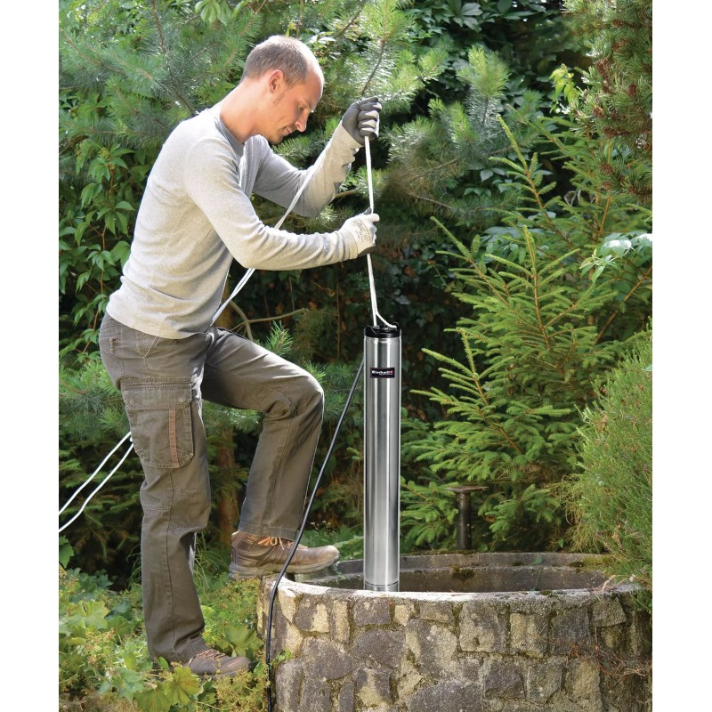 Die maximale Eintauchtiefe beträgt 19 Meter. Das 22 m lange Netzkabel und das mitgelieferte Abseilseil ermöglichen eine flexible Nutzung der Pumpe. Mit dem leistungsstarken 1.100-W-Motor kann die Pumpe bis zu 6.000 Liter pro Stunde fördern.