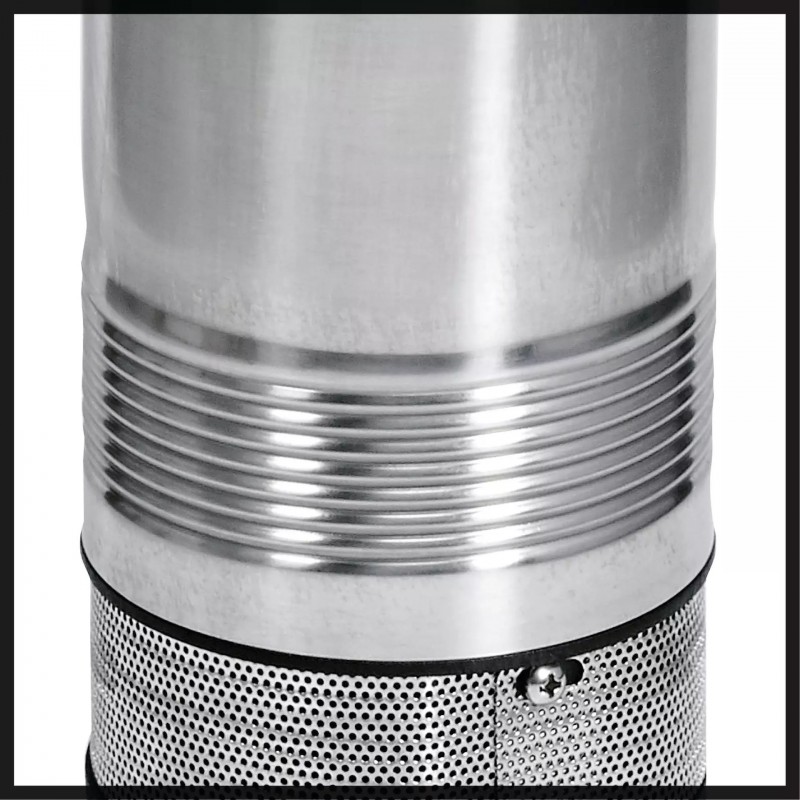 Die Tauchdruckpumpe ist nicht nur optisch ansprechend, sondern wurde auch extrem robust konstruiert und mit wichtigen Sicherheitselementen ausgestattet. Das Pumpengehäuse und das Schmutzsieb aus Edelstahl, der Druckanschluss mit Edelstahleinsatz sowie die hochwertige Gleitringdichtung bilden die Basis für eine lange Lebensdauer. Der integrierte Trockenlaufschutz schützt die Pumpe vor Schäden bei Unterbrechung der Wasserzufuhr.