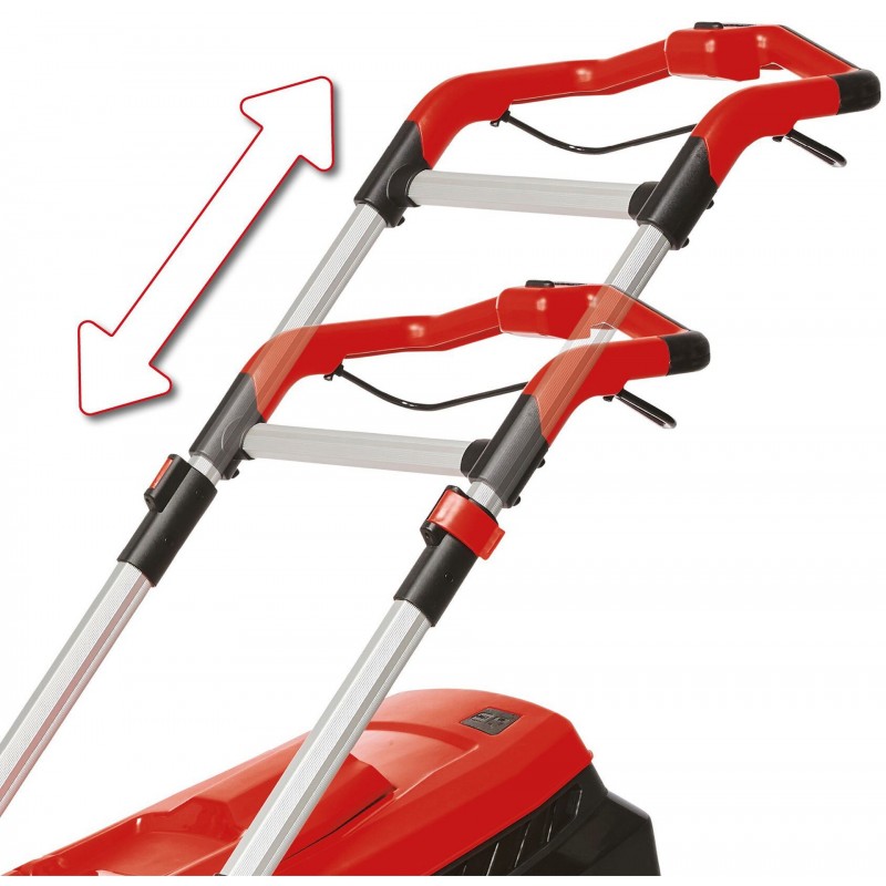 Komfortables Mähen garantiert der ergonomische Griffbereich. Der höhenverstellbare Holm lässt sich individuell an die Körpergröße anpassen.
