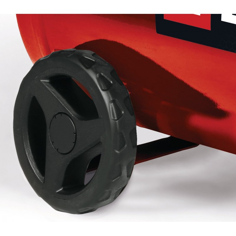 Einfach und schnell zu transportieren ist der Kompressor dank des praktischen Transportgriffs und der zwei gummierten Räder.