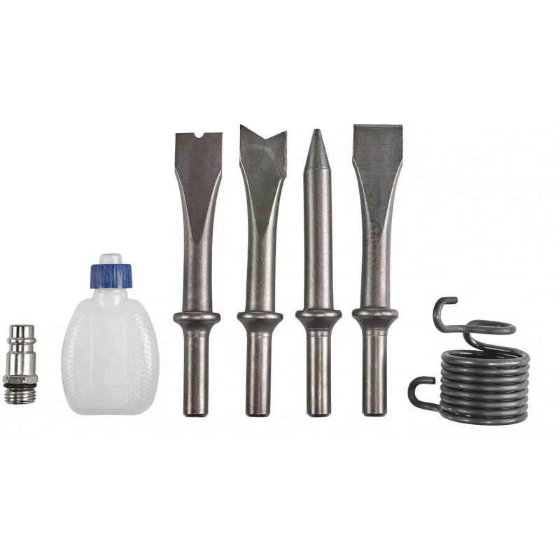 Geliefert wird der Meißelhammer im Set mit einem Ölfläschchen, einem Stecknippel und einer Spannfeder.