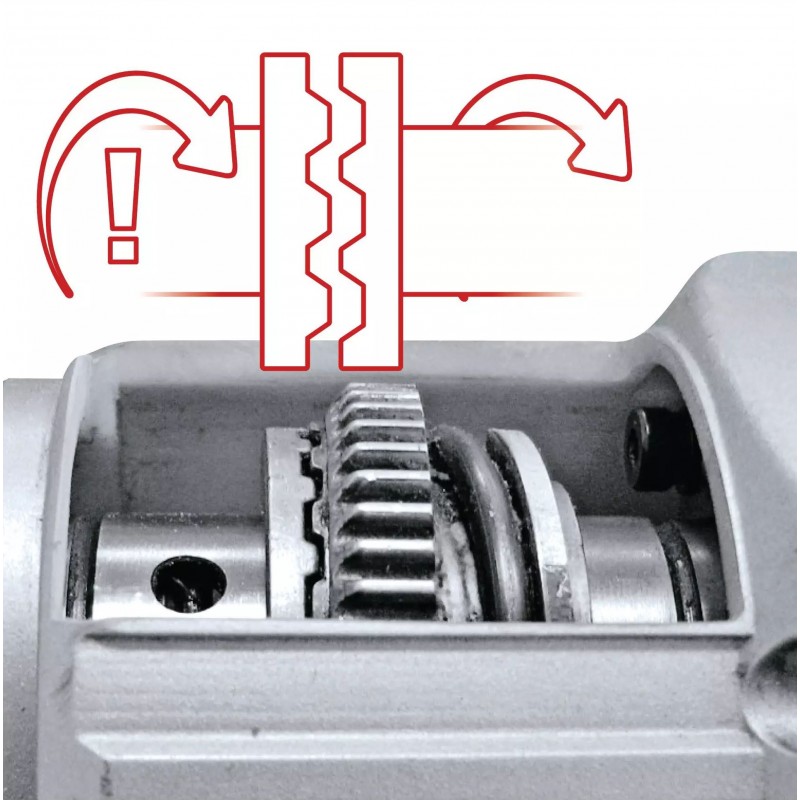 Die Überlastrutschkupplung schützt den Bohrhammer vor Schäden, die z. B. durch Blockierung oder Überbelastung des Gerätes hervorgerufen werden können.