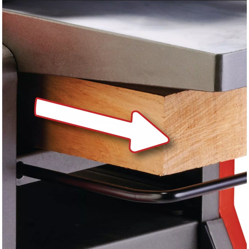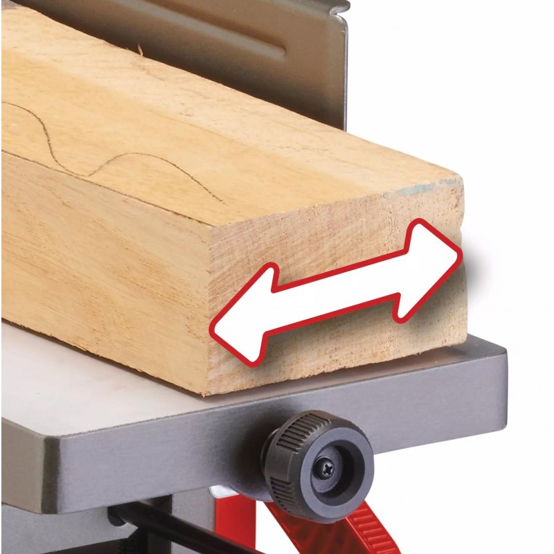 Auf dem stabilen Aluminium-Abrichttisch mit integriertem Anschlag lassen sich Balken und Bretter mit max. 3 mm Abtrag bearbeiten. Die Schutzabdeckung der Hobelmesser kann präzise an die Breite und Höhe des Werkstücks angepasst werden.