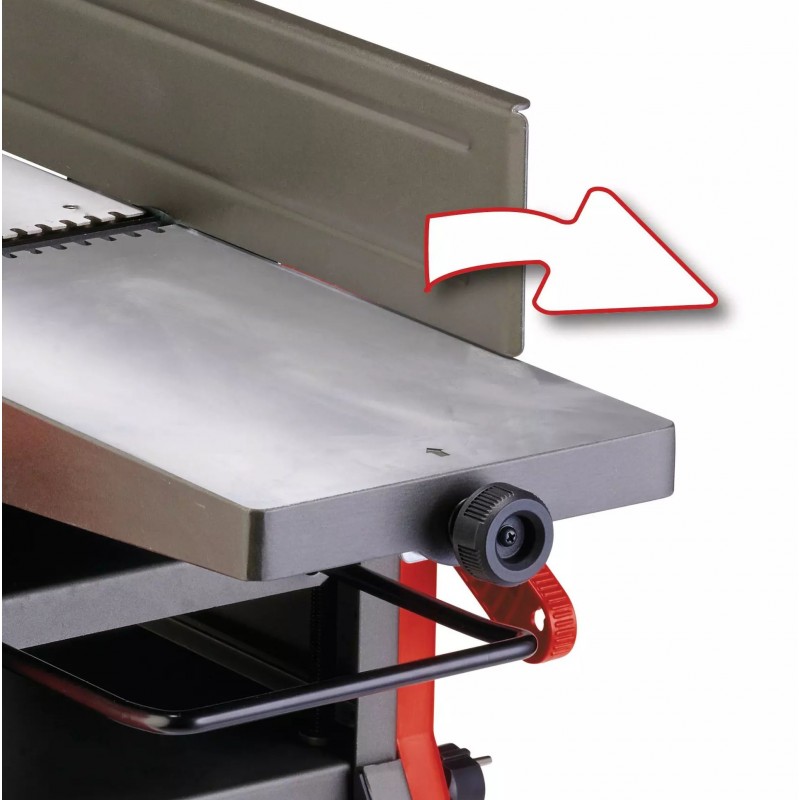 Der max. Abtrag lässt sich beim Dickenhobeln bis 2 mm einstellen. Mit 204 mm Durchlassbreite, 120 mm Durchlasshöhe und ausziehbarem Ausgabebügel eignet sich die Hobelmaschine zum Dickenhobeln von Brettern und kleineren Balken.