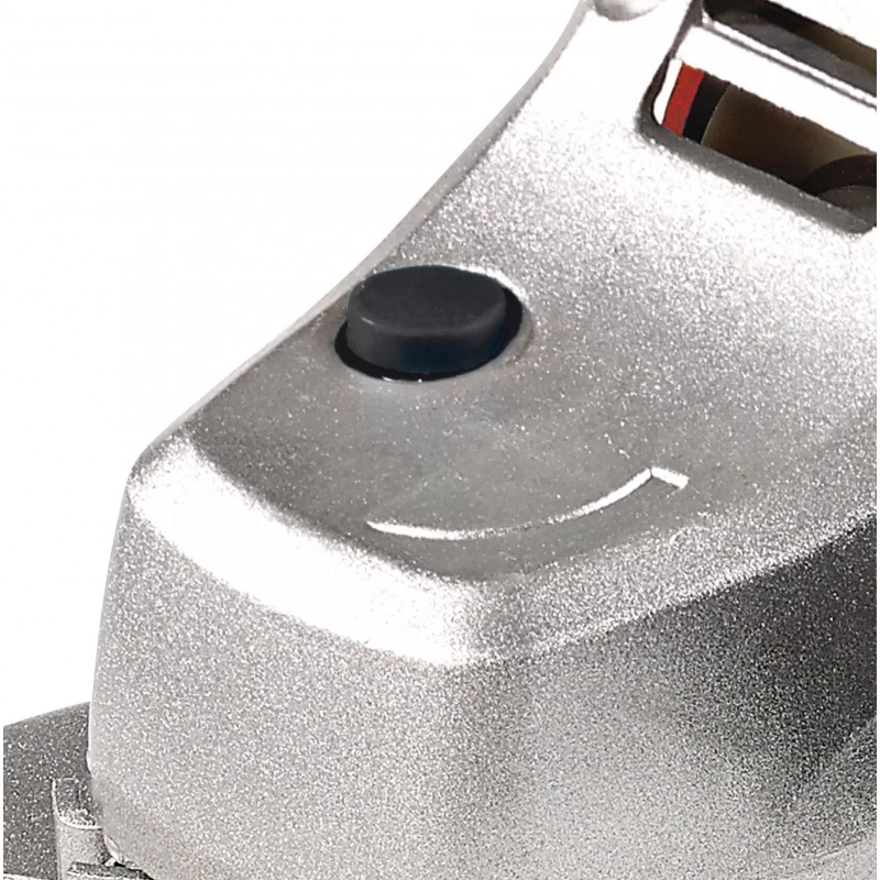 Der schnelle und komfortable Werkzeugwechsel von Trennscheiben bis zu 125 mm Durchmesser gelingt durch die einfache Arretierung der Spindel per Knopfdruck.