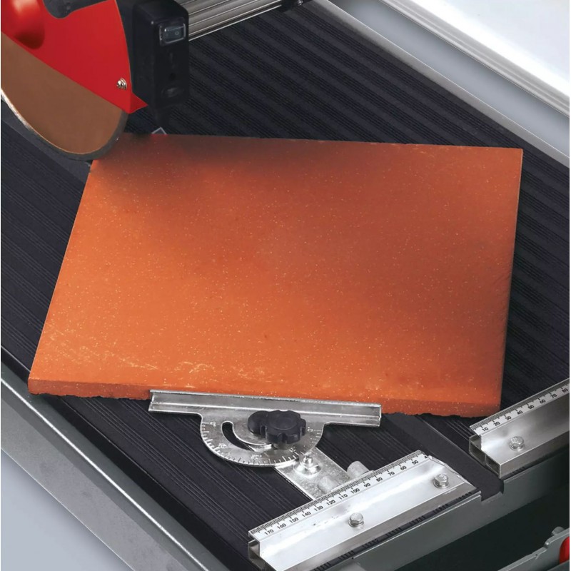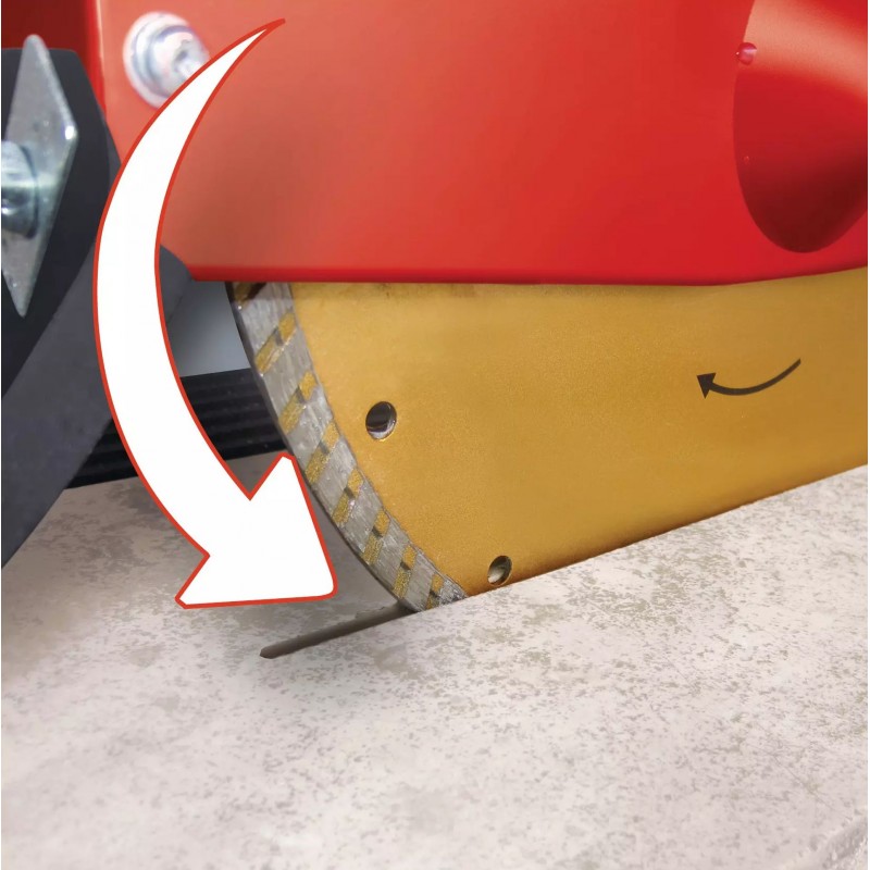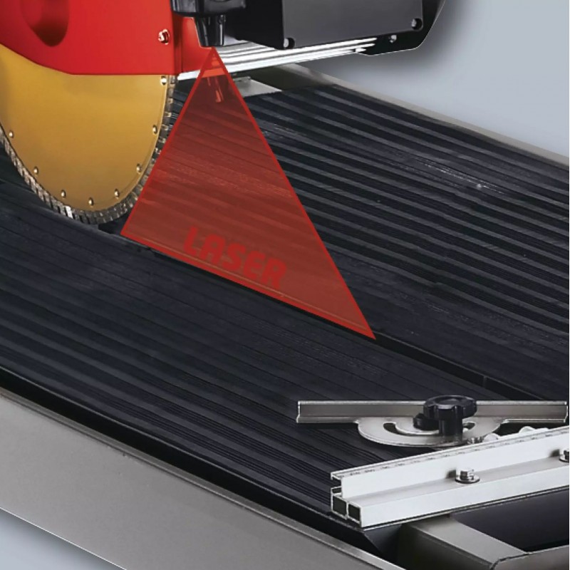 Die Steintrennmaschine TE-SC 920 L ist ein zuverlässiges und hochwertiges Gerät, mit dem sich Platten aus Stein und Beton, Ziegeln sowie Fliesen schnell und exakt zuschneiden lassen. Ihr robuster Motor stellt mit 2200 Watt reichlich Leistung zur Verfügung, um die Turbo-Diamant-Trennscheibe mit 300 mm Durchmesser zügig durch harte Materialien wie Granit und Marmor zu treiben. Die RT-SC 920 L verfügt über einen von 0° bis 45° stufenlos schwenkbaren Motorkopf mit vierfach kugelgelagerter Motorführung, mit dem sich dank extralangem Zug Materiallängen bis zu 920 mm Länge schneiden lassen. Dank gradgenau einstellbarem Alu-Winkelanschlag lassen sich Gehrungs-, Doppelgehrungs- oder Jollyschnitte mit wenigen Handgriffen ausführen. Die bewegliche Lagerung des Motorkopfes ermöglicht darüber hinaus die Ausführung von Tauchschnitten. Der große Arbeitstisch mit rutschfester Gummiauflage ruht auf einem robusten Untergestell. Ein abnehmbarer Laser erleichtert das präzise Arbeiten, indem er die Trennlinie exakt auf dem Werkstück markiert. Das Wasser zur Kühlung der Trennscheibe fördert die Maschine mittels integrierter Wasserpumpe aus der massiven Wasserauffangwanne aus Stahlblech