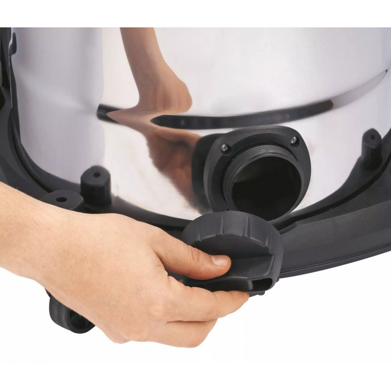 Der 30 Liter fassende rostfreie Auffangbehälter bietet genug Raum für große Mengen an Staub, Schmutz oder Flüssigkeiten.