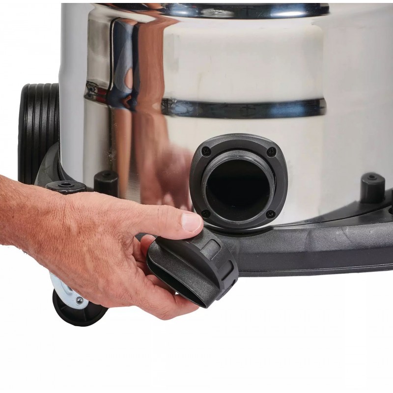 Der rostfreie Edelstahlbehälter ist extrem langlebig und bietet Raum für bis zu 40 Liter Flüssigkeit, Staub oder Schmutz. Dank der integrierten Wasserablassschraube lassen sich auch größere Wassermengen ganz einfach und schnell entleeren.
