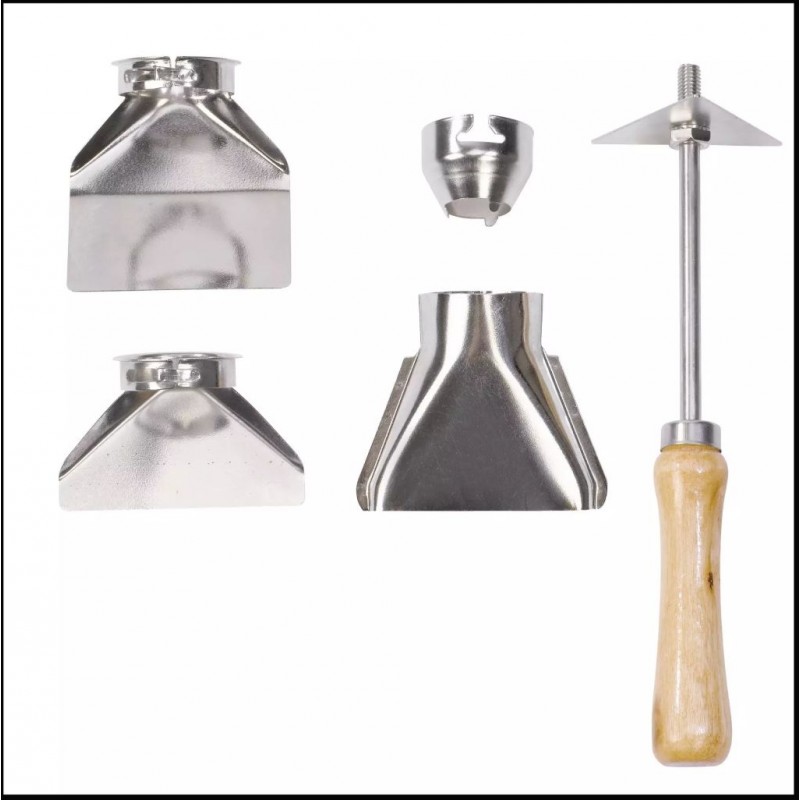 Im Lieferumfang enthalten sind: 1x Abstrahldüse, 1x Reduzierdüse, 1x Breitstrahldüse, 1x Reflektordüse und 1x Farbkratzer.