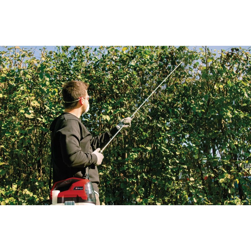 Das Original Einhell Sprüher Zubehör Kit ist ein zweiteiliges Zubehör-Set, das mit den Einhell Akku-Drucksprühgeräten GE-WS 18/35 Li, GE-WS 18/75 Li und GE-WS 18/150 Li verwendet werden kann. Die robuste Edelstahl-Sprühlanze ist teleskopierbar und kann in der Länge von min. 1 Meter bis max. 2 Meter verstellt werden. Mit Hilfe der transparenten Sprühglocke kann das Sprühmittel gezielt auf bestimmte Bereiche ausgebracht werden und man hat dabei stets optimale Sicht auf den Arbeitsbereich. Die Sprühglocke hat folgende Innen-Abmessungen: 210 x 75 x 95 mm.