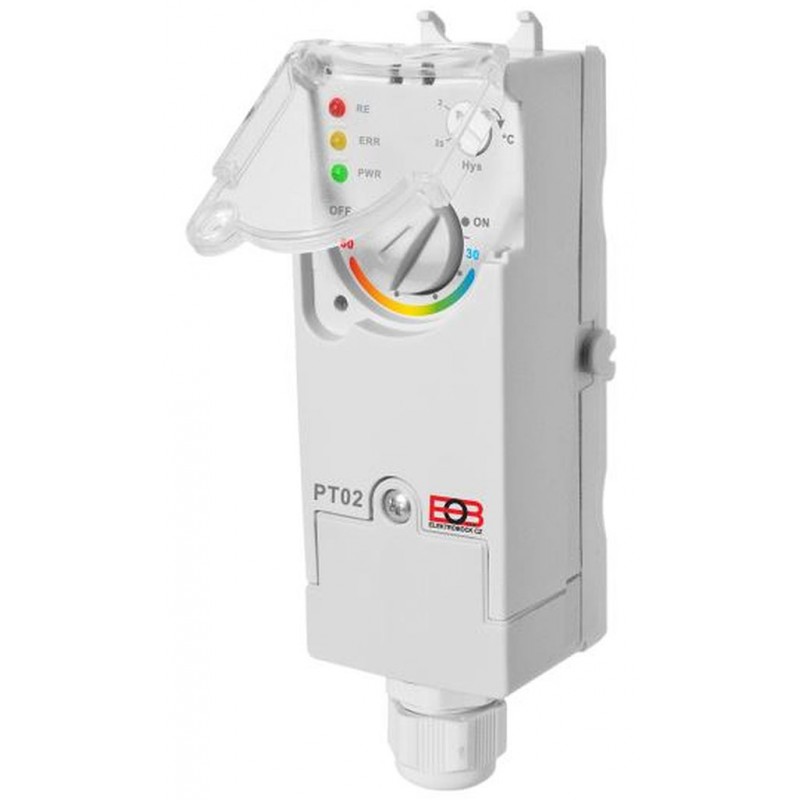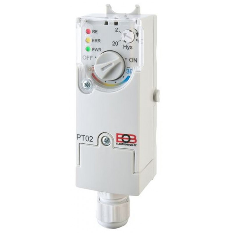 Das elektronische PT02-Thermostat dient zum Einschalten von Zirkulationspumpen in Abhängigkeit von einer eingestellten Temperatur und Hysterese.