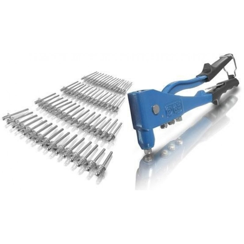 mit auswechselbaren Einsätzen 2.4, 3.2, 4.4, 8 mmund je 15 Stk. 2.4, 3.2, 4.4, 8 mm Nieten