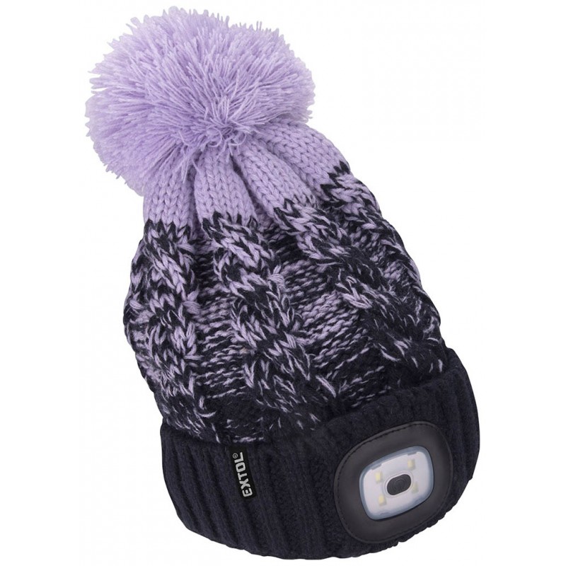 EXTOL LIGHT Kappe mit Stirnlampe 4x45lm, USB-Aufladung, dunkelblau / lila mit Bommel 43466