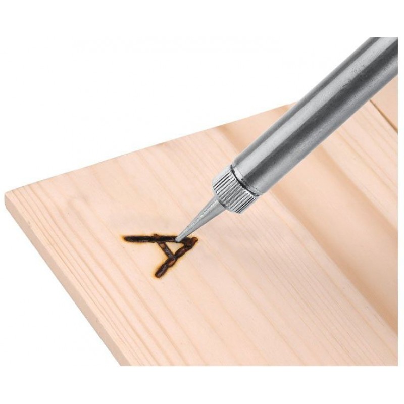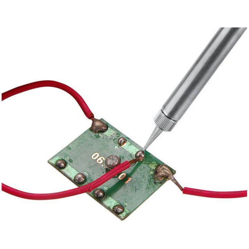 Die analoge Lötstation Extol® Premium SGS 40 (8894520) ist vor allem zum weichen Löten bestimmt, welches präzises Arbeiten erfordert – besonders im Elektronik- und Bijouteriebereich, wo keine großen Anforderungen an Beständigkeit gegen mechanische Beanspruchung gestellt werden. Ferner kann sie zu kleineren Arbeiten beim Schneiden oder Verbinden von Kunststoffen und Ausbrennen von Symbolen in Holz benutzt werden.- Die Lötstation ermöglicht eine feine Temperaturregelung je nach Temperaturempfindlichkeit des gelöteten Werkstoffe, wobei ein Millimeter des Skalaumkreises eine Temperaturänderung um ~ 5°C darstellt.- Die Lötpistole ermöglicht dank einer dünnen Spitze und Halteposition wie ein Schreibzeug die Ausführung von kleinen, präzisen Lötarbeiten.- Der gummierte Griff sorgt für angenehmen Halt bei der Arbeit und verhindert das Abrutschen von Fingern.- Dank dem langen Netzkabel und abnehmbaren Ständer muss man sich nicht in unmittelbarer Nähe der Stromversorgung befinden.- Die Ausführung der Lötpistole ermöglicht ihre dauerhafte Platzierung auf dem Arbeitstisch.Das Produkt ist nicht für einen alltäglichen langzeitigen Einsatz z. B. im Produktionsbereichen bestimmt.