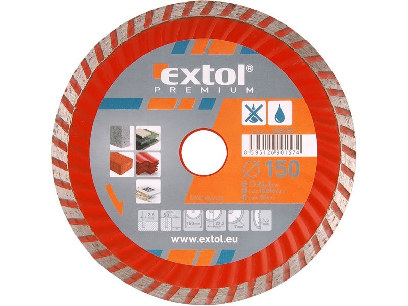 - Pre odoslanie na Slovensko navštívte EXTOL PREMIUM kotúč diamantový rezný 180x22, 2mm TURBO - suché i mokré rezanie 108754
