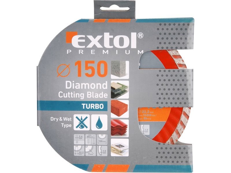 - Pro odeslání do Česka navštivte EXTOL PREMIUM kotouč diamantový řezný 180x22,2mm TURBO - suché i mokré řezání 108754