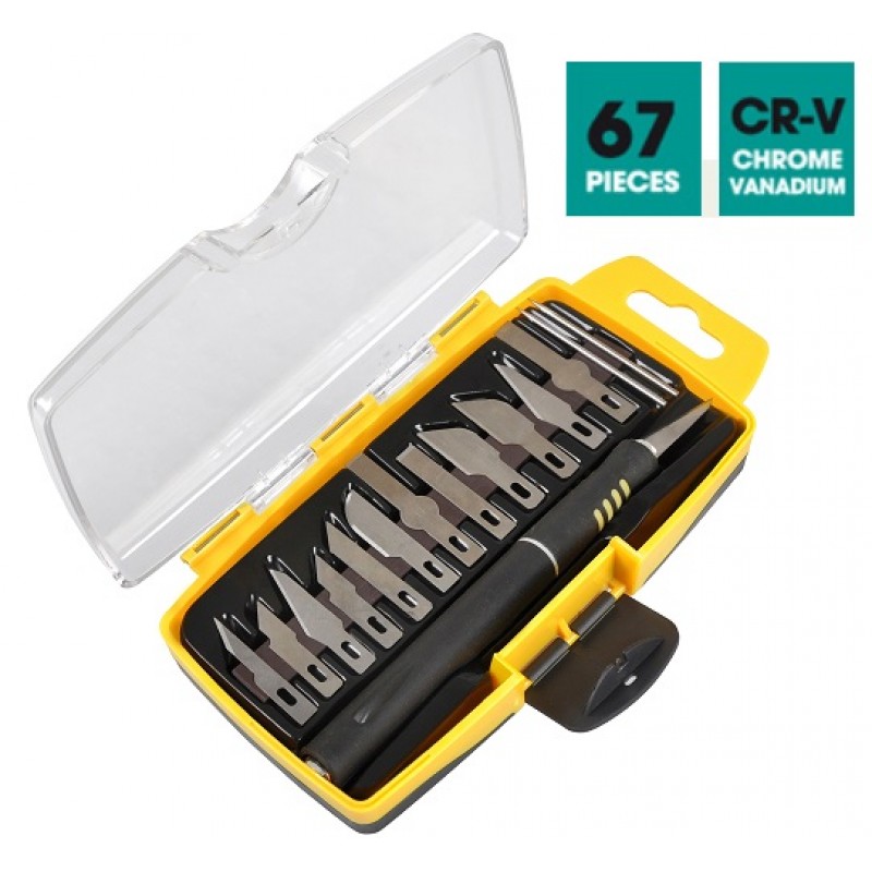 Ein Satz von zwanzig 6-mm-Bits aus CR-V-Material, das für eine höhere Materialfestigkeit steht und somit für weniger Verschleiß sorgt. Das Set ist logisch aufgebaut, da es bis zu drei identische Bits des Typs enthält, so dass bei Bit-Verschleiß oder -Verlust weitergearbeitet werden kann. Im Set enthalten ist außerdem eine Verlängerung, die aus der Bohrmaschine einen universellen Schraubendreher macht.