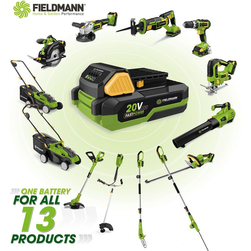 Der Li-Ionen-Akku der renommierten Marke FIELDMANN ist ein echter Spitzenreiter in seiner Klasse. Er ist kompatibel mit allen Maschinen der FAST POWER 20V Akkuserie. Dieser Batterietyp zeichnet sich durch eine extrem lange Lebensdauer und Ausdauer und vor allem durch eine ausgewogene Leistung über den gesamten Lebenszyklus bei geringem Gewicht aus. Der Leistungsunterschied bei vollgeladenem oder fast entladenem Akku ist minimal, das werden Sie besonders bei Dauerarbeiten zu schätzen wissen, egal ob im Garten oder in der Werkstatt. Sie arbeiten ohne Memory-Effekt, sodass Sie sie in jedem Stadium der Entladung aufladen können, ohne ihre Kapazität zu beeinträchtigen. Sie sind gegen Überlastung, Überhitzung und Tiefentladung geschützt und haben eine minimale Neigung zur Selbstentladung, sodass sie auch nach längerer Lagerzeit noch volle Leistung erbringen können.