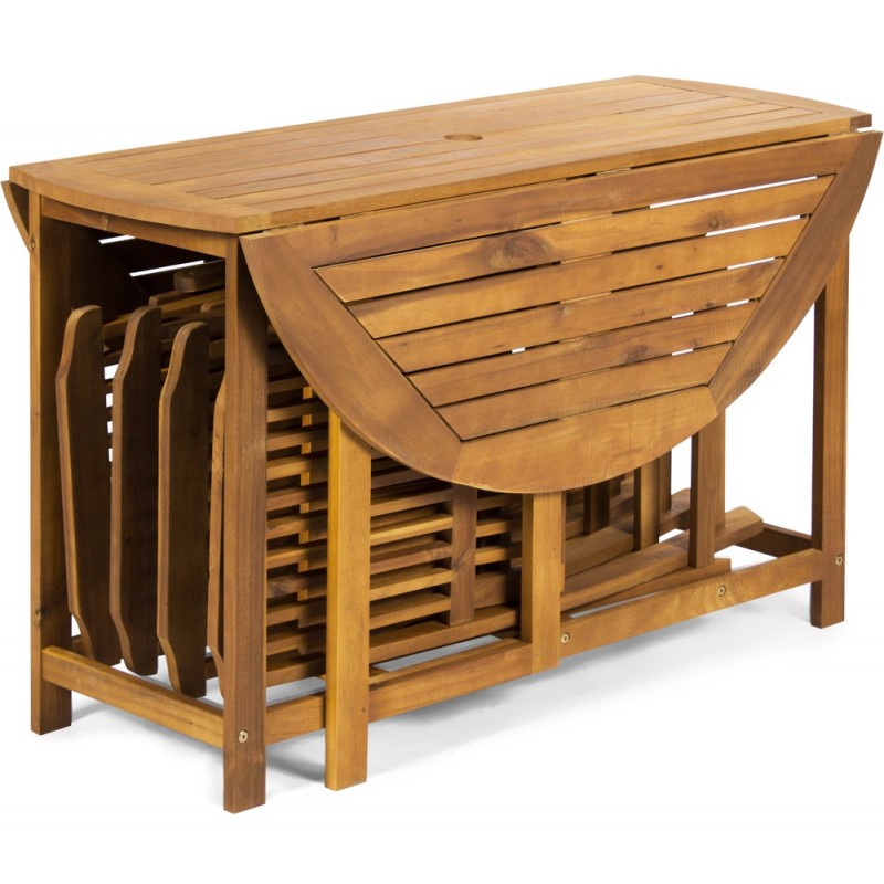 Bis zu vier Personen finden an diesem Gartenmöbelset aus der hochwertigen Akazienholz platz. Das besondere Design versprüht auch in Ihrem Garten einen exotischen Charme.Akazienholz weist ähnliche Eigenschaften wie