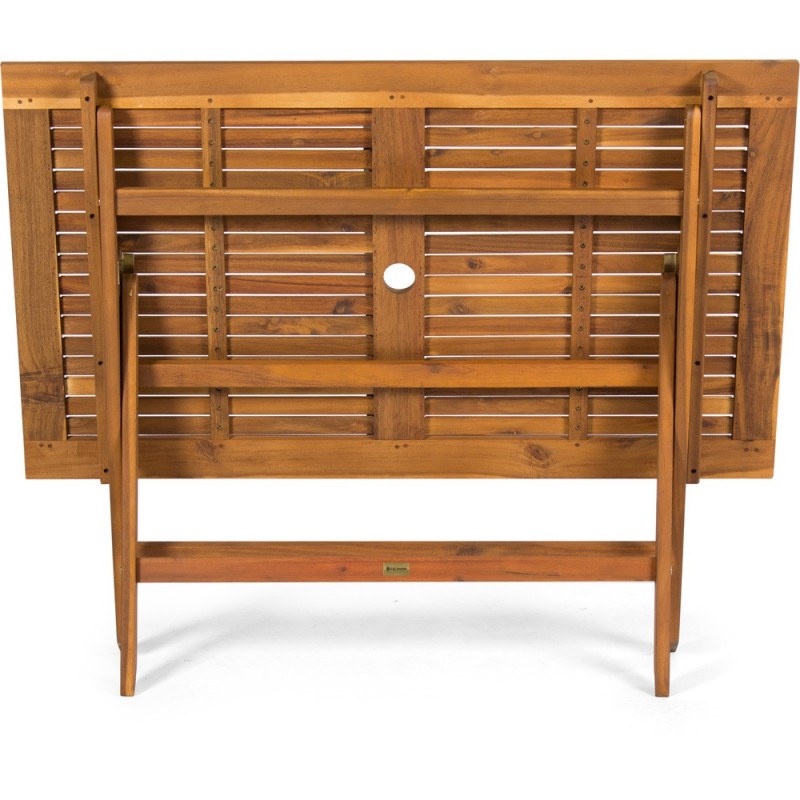Das Set ist aus Akazienholz gefertigt. Das integrierte Schirmloch bietet die Möglichkeit, einen Sonnenschirm direkt über dem Set aufzuspannen.Die Stuhle lassen sich auf ein sehr kompaktes Maß zusammenklappen, um sie zu lagern. Das integrierte Schirmloch bietet die Möglichkeit, einen Sonnenschirm direkt über dem Set aufzuspannen. Das Set besteht aus 1 Tisch und 4 Stuhlen.