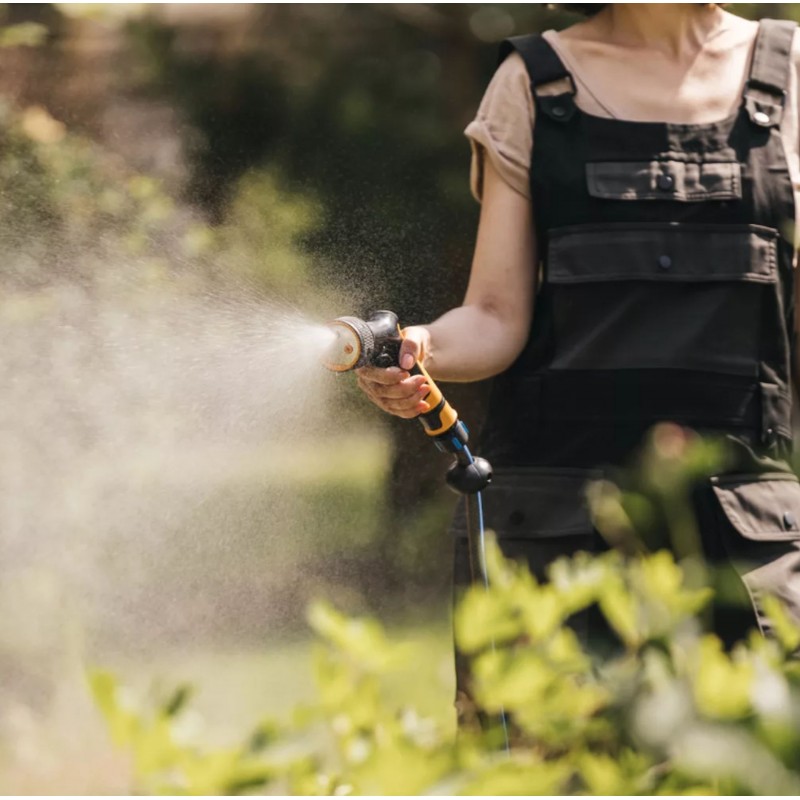 Die Fiskars Sprühpistole mit 3 Funktionen ist ergonomisch und intuitiv und macht jede Bewässerungsarbeit zu einem Vergnügen. Der komfortable SoftGrip™-Griff auf dem Frontreglergriff und dem austauschbaren Sprühkopf mit 3 Funktionen erleichtert das Halten und Einstellen, auch bei kälterem Wetter. Durch sanftes Drehen lässt sich das Sprühbild des Kopfes von Strahl über Nebel bis hin zur Brause verändern, und mit dem arretierbaren Ein-/Aus-Frontregler lässt sich der Durchfluss stufenlos einstellen. Kopf und Griff können je nach Bedarf mit anderen Bewässerungsprodukten von Fiskars ausgetauscht werden; dank der Universalgröße passen sie auch auf Produkte anderer Marken.