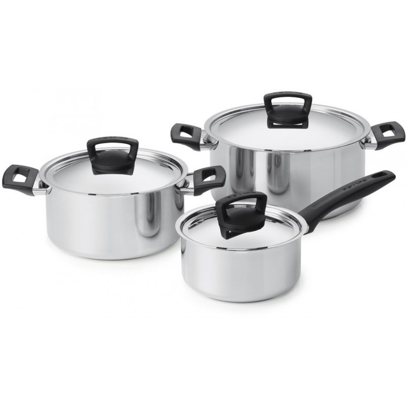 opfset bestehend aus Stieltopf 1,5 l, Kasserolle 3,0 l und Kasserolle 5,0 l (jeweils mit Deckel). Leicht und spülmaschinengeeignet. Aus rostfreiem Stahl mit komfortablen, bis 180° C hitzebeständigen Griffen.Die Bilder können vom original Produkt/Artikel abweichen.