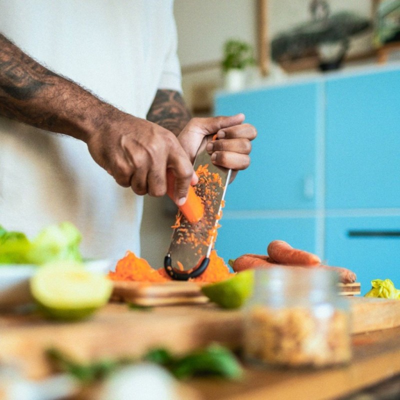 - Robuste Edelstahlklinge mit Schutzabdeckung für sichere Aufbewahrung