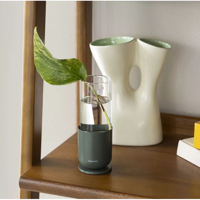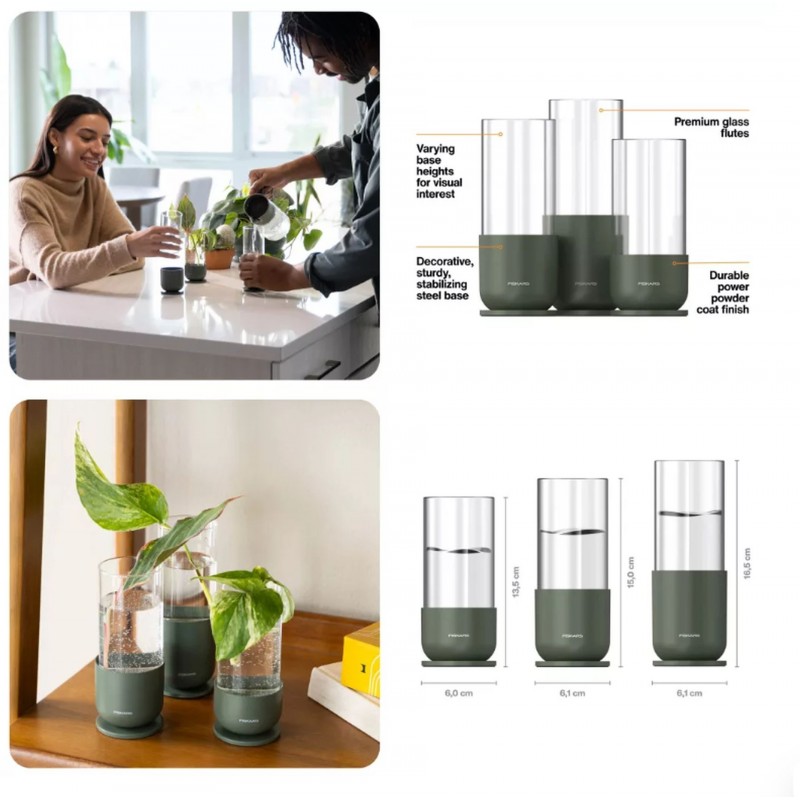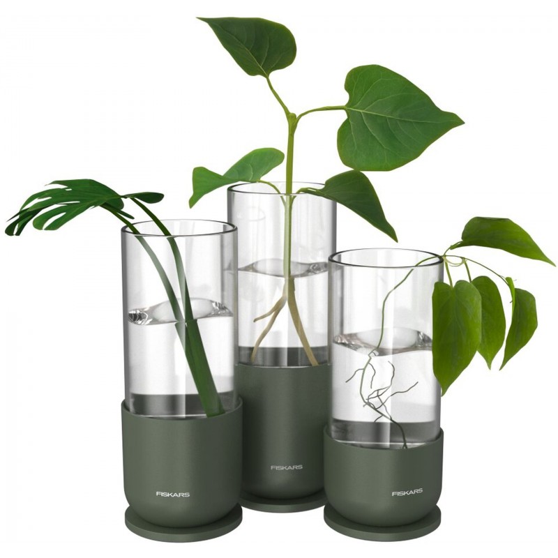 Das Fiskars Pflanzenvermehrungs-Set ermöglicht das stilvolle und effiziente Bewurzeln neuer Pflanzen. Dieses dreiteilige Set verwandelt Stecklinge Ihrer Lieblingspflanzen in gesunde Jungpflanzen. Die Kombination aus hochwertigem Glas und stabiler Metallbasis bietet nicht nur ein funktionales Werkzeug für Pflanzenliebhaber, sondern auch ein elegantes Dekorationselement für Ihr Zuhause.