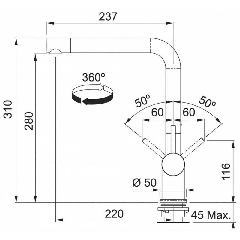 • Abstand Auslauf: 237 mm