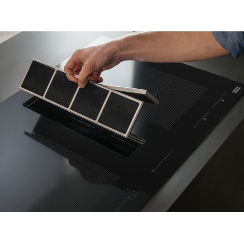 Kochfeldabzug, Mythos 2gether Icon Steel, FMY 8391R HI Schwarz, Umluft, Flächenbündig integriertes Abdeckgitter