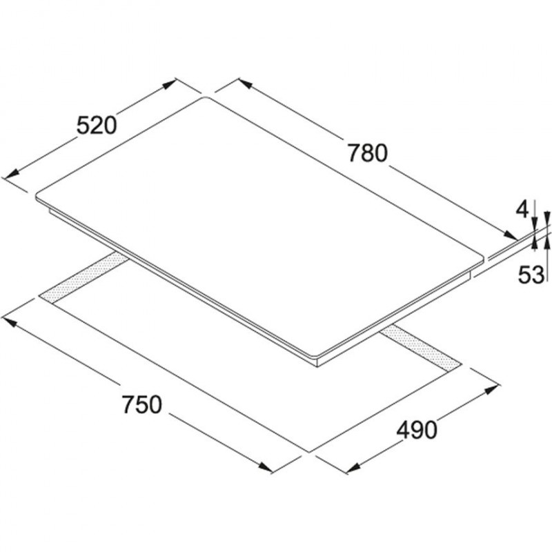 - Ausschnittmaße aufliegend: 760mm x 500 mm