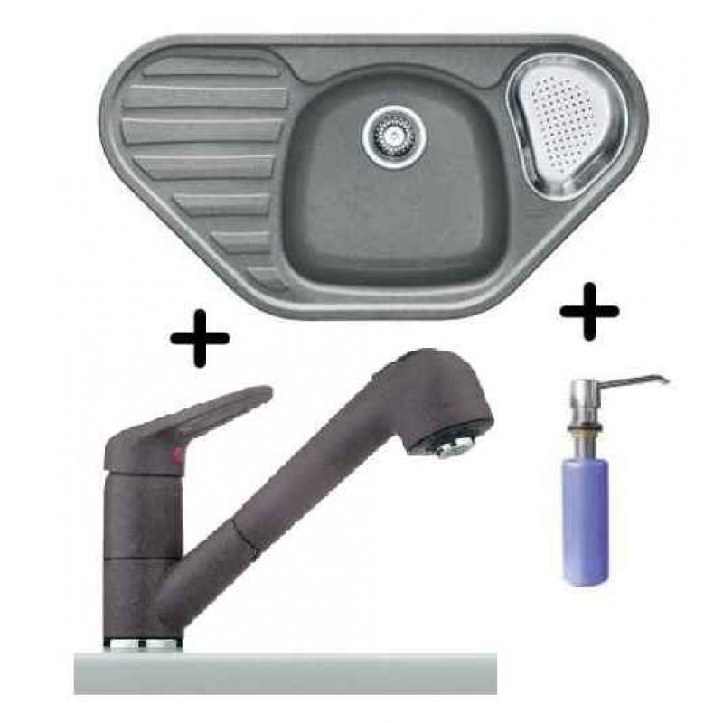 - Pro odeslání do Česka navštivte Franke SET G48 granitový dřez COG 651 E šedý kámen + dřezová baterie FC 9547.084 + FD 300