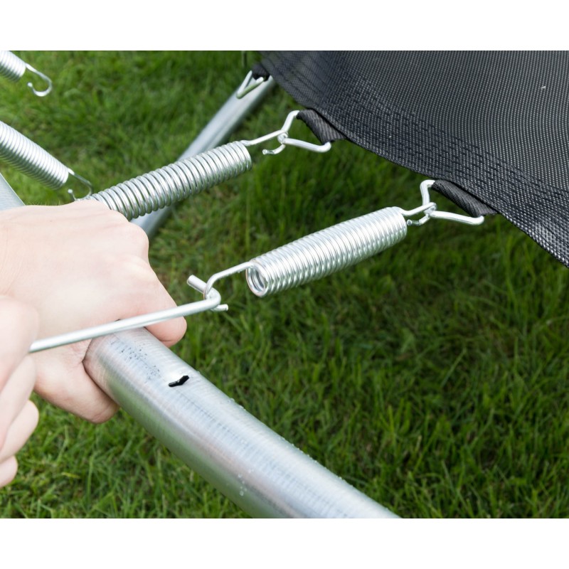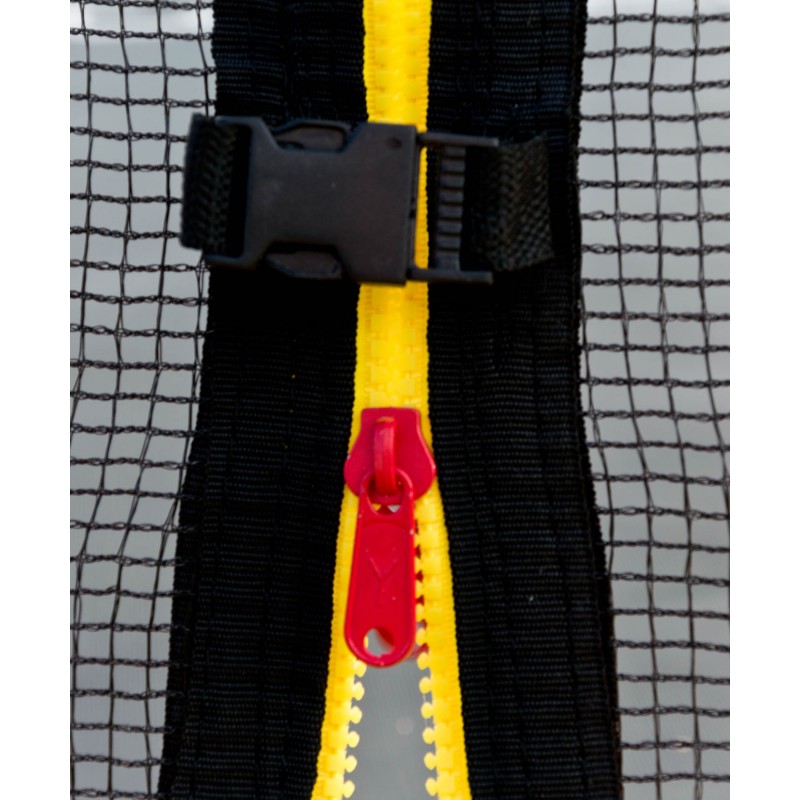 Die Länge der Stangen, die die Sicherheitsnetz tragen ist genügend für maximale Sicherheit. Die Stage muss bis zum Boden führen, nur so können Sie dem Ausfallen aus Trampolin verhüten.