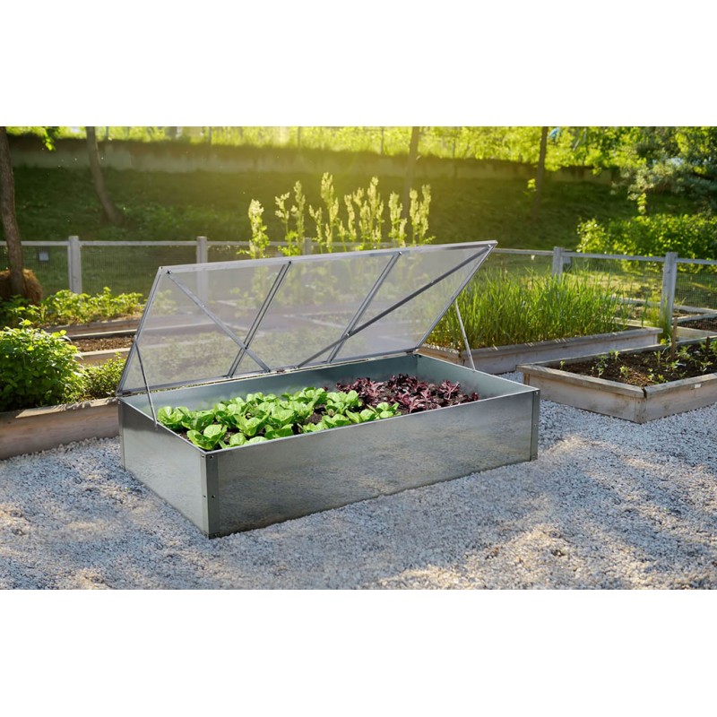 Der obere Aluminiumrahmen mit 4 mm Polycarbonatfüllung bietet Ihnen dank der variablen Einstellung in der gewünschten Position einen bequemen Zugang beim Pflanzen und Pflegen der gepflanzten Pflanzen.