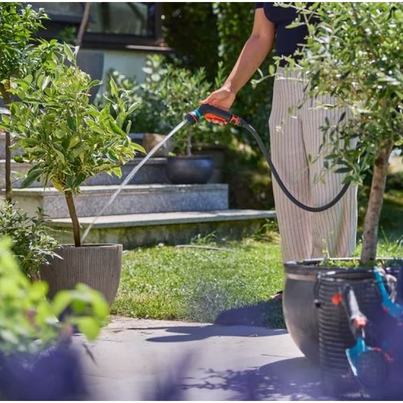 Die GARDENA Classic Compact Multi-Brause ist ein vielseitiger Helfer für die tägliche Gartenbewässerung und Reinigungsarbeiten. Sie bietet drei universelle Sprühbilder: einen sanften Sprühnebel für empfindliche Pflanzen, einen harten Strahl für Reinigungsarbeiten sowie einen kraftvollen Vollstrahl zum Gießen von Topfpflanzen oder zum Befüllen von Gefäßen. Dank der stufenlosen Wassermengenregulierung lässt sich der Wasserfluss jederzeit optimal anpassen.
