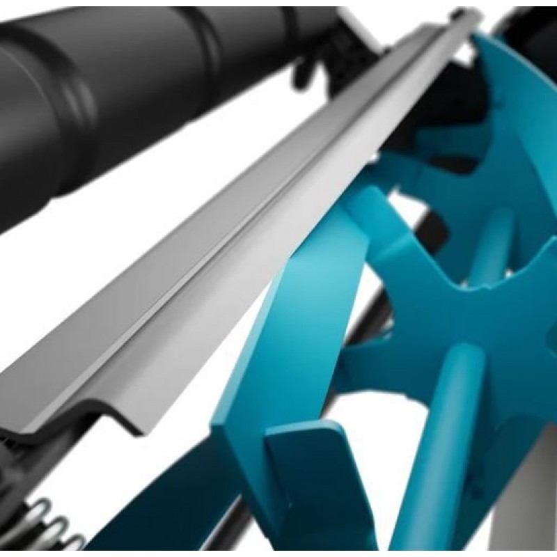 Dank der Frictionless Technology sind die Messer werkseitig auf einen Abstand von nur 40 Mikrometern eingestellt – dünner als ein Grashalm – und berühren sich nicht. Dadurch bleiben sie dauerhaft scharf und liefern ein gleichmäßiges Schnittbild. Die leichte Bauweise und die großen Räder ermöglichen müheloses Schieben und präzises Manövrieren, auch in engen Bereichen oder bei feuchten Bedingungen.