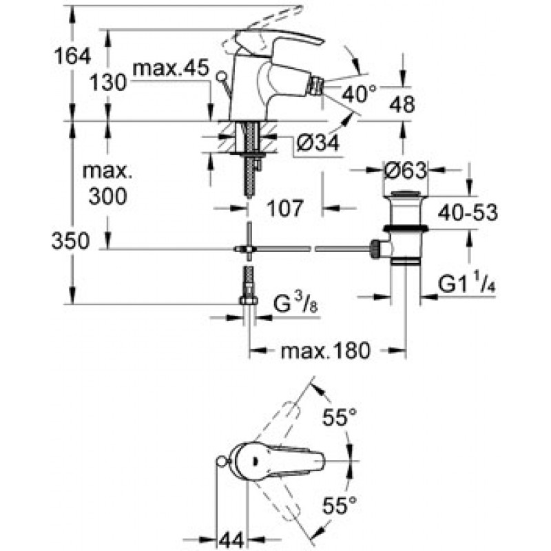 GROHE, Eurostyle, Einhand-Bidetbatterie, DN 15, Einlochmontage, GROHE SilkMove, 35 mm Keramikkartusche, GROHE StarLight Chromoberflächen, Bedienungshebel aus Metall, variabel einstellbare Mengenbegrenzung, einstellbare Mindestmenge 2,5 l/min, Kugelgelenk-Mousseur, Zugstangen-Ablaufgarnitur 1 1/4'', flexible Anschlussschläuche, Schnell-Montage-System, Armaturengruppe I nach DIN 4109, DVGW Reg. Nr. NW-6506BR5761Bemerkung:Mit Zugstangen-Ablaufgarnitur 1 1/4"
