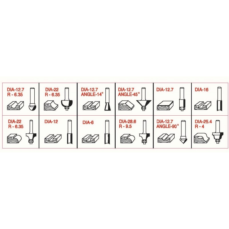 - 1× Hohlkehlfräser mit Kugellager (⌀ 22 mm, R 6,35 mm)