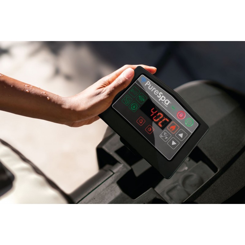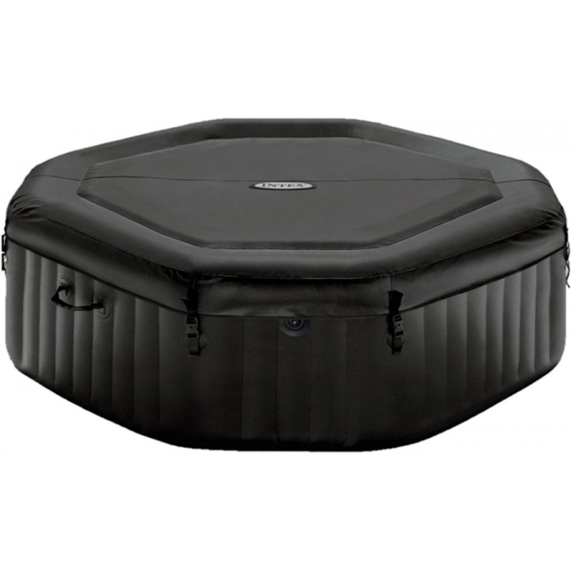 Luxuriöser aufblasbarer Whirlpool INTEX PureSpa Jet & Bubble Deluxe Octagon im eleganten Design in schwarzem Onyx verwandelt Ihren Garten oder Ihre Terrasse in ein perfektes Wellnesszentrum. Dieser Whirlpool für 4 Personen kombiniert Massagedüsen mit einem leistungsstarken Bubble-System, moderne Wasseraufbereitungstechnologien sowie eine komfortable Steuerung per App. Genießen Sie maximale Entspannung, Regeneration und Komfort zu jeder Jahreszeit.