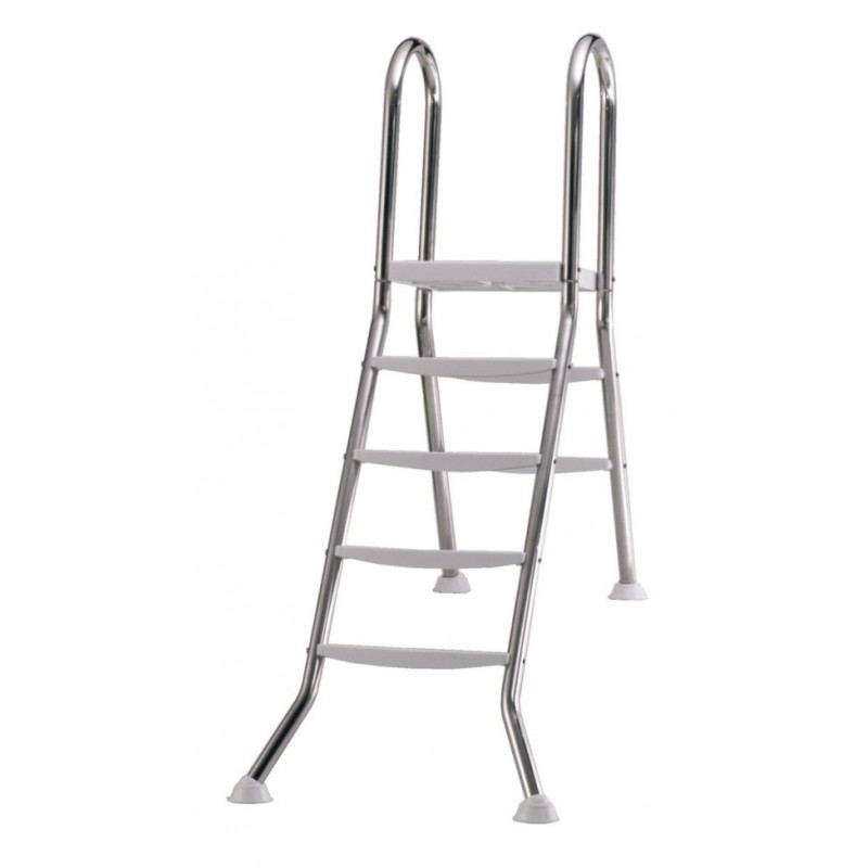 INTEX Aufstellbeckenleiter Edelstahl, 4 + 2 Stufen 018001Edelstahlleiter für Aufstellpools bis 120 cm Beckenhöhe, bis 60 cm eingebaut, 1 x 4 + 2 Kunststoffstufen, Holm O 43 mm