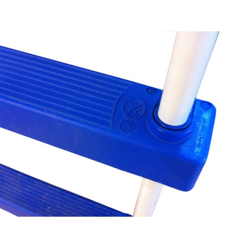 Produziert aus beschichtetem Stahlrohr und beidseitigen Stahlverstrebungen auf der Oberseite verfügt die INTEX Leiter über eine maximale Tragkraft von 136 kg.