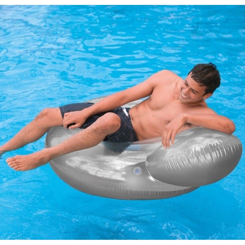 INTEX Lounge Pillow-Back silber 158889EUUnzählige Möglichkeiten bietet der 137 x 122 cm große Lounge Sessel. Für den Einsatz im Pool, auf der Terrasse oder auch als TV-Sessel, ein bequemeres Relaxen ist fast nicht mehr möglich. 2 Luftkammern und ein 0,25 mm starkes Vinyl sorgen für hohe Stabilität. Verfügbar in 2 verschiedenen Farben.