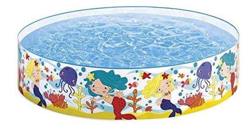 Der Snap Pool "Meerjungfrauen" von Intex ist ca. 183 x 38 cm groß und sorgt für unendlichen Wasserspaß. Er ist bereits für Kinder ab 3 Jahren geeignet, welche an heißen Sommertagen nach dem Kindergarten oder am Wochenende die perfekte Abkühlung genießen können. Er muss nicht mit Luft aufgeblasen, sondern einfach nur mit Wasser befüllt werden und hält so von ganz alleine die Form. Durch das verarbeitete PVC ist er äußerst robust und stabil.Altersempfehlung: ab 3 Jahren.