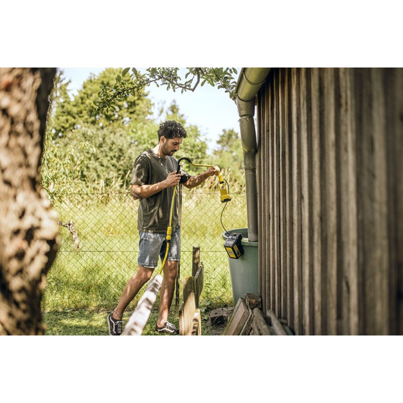 Die Kärcher BP 2.000-18 Barrel Akku-Fasspumpe ermöglicht die komfortable Nutzung von Regenwasser – ganz ohne Stromanschluss. Das Gerät ist Teil der 18 V Kärcher Battery Power Plattform. Akku und Ladegerät sind nicht im Lieferumfang enthalten.