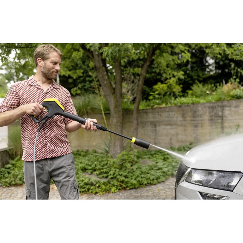 Die Pistole ist mit einem LCD-Display und Tasten zur Druck- oder Reinigungsmitteldosierung ausgestattet. Sie beinhaltet den eco!Mode für geringeren Wasser- und Stromverbrauch. Die 180°-Ebenenverstellung der Pistole ermöglicht ergonomisches Reinigen und mehr Flexibilität bei der Anwendung. Quick Connect sorgt für schnelles und einfaches Anschließen des Hochdruckschlauchs.