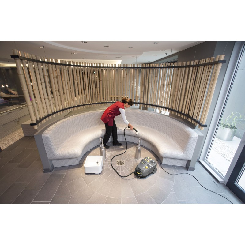 Die stufenlose Dampfmengenregulierung sowie die VapoHydro-Funktion zur Anpassung der Dampfsättigung ermöglichen eine optimale Abstimmung auf jede Reinigungsaufgabe – von trockener Dampfapplikation bis hin zum Heißwasserstrahl zur Lösung hartnäckiger Verschmutzungen. Das schnell aufheizende 2-Tank-System ist permanent wiederbefüllbar und erlaubt langes, unterbrechungsfreies Arbeiten.