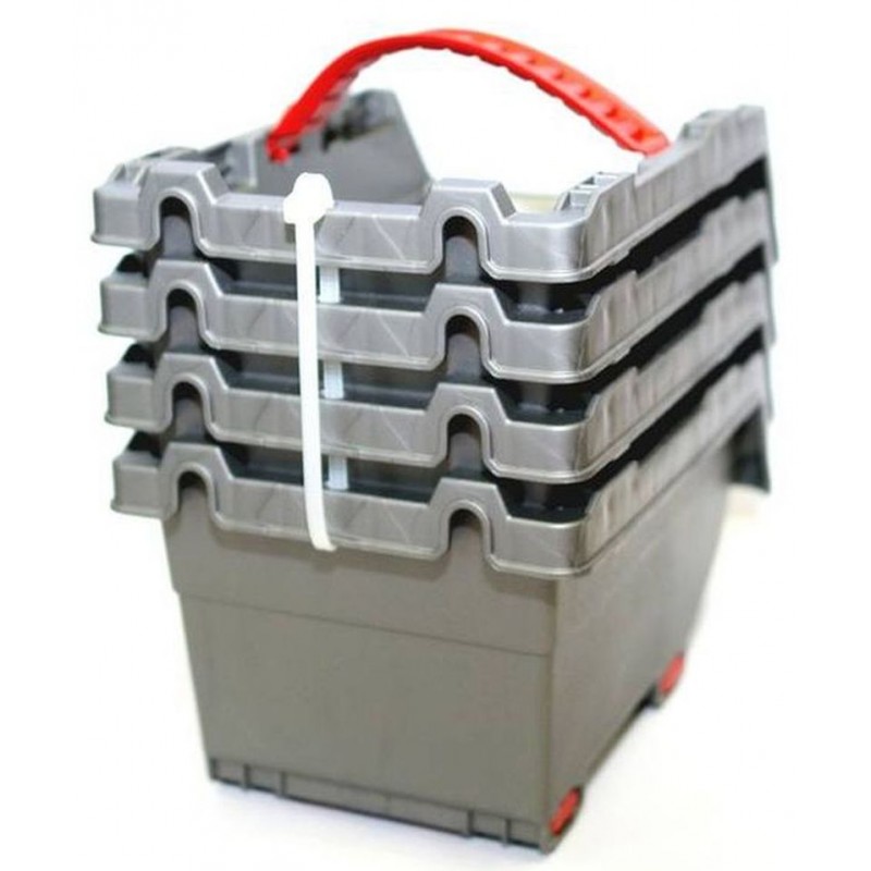 KETER CLICK BIN S Lagersichtkasten 4x0,45L 15,5x11x8,5cm grau 17197117Nutzen Sie den Platz Ihrer Werkstatt mit diesen an der Wand montierbaren praktischen Aufbewahrungskästen bestmöglich aus. Das innovative, stapelbare Design ermöglicht mit vier Stiften das sichere Stapeln. Bei Bedarf können die Lagersichtkästen einfach getrennt und mit dem Tragegriff transportiert werden. Dank der offenen Front sind Ihre Werkzeuge jederzeit leicht zugänglich und direkt sichtbar.