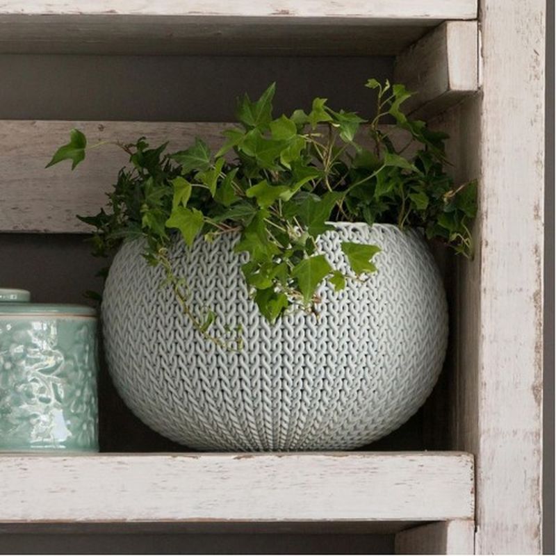 Blumenübertopf in eleganter Strickoptik, ohne Innenbehälter.Kann sowohl Innen als Draußen benutzt werden.