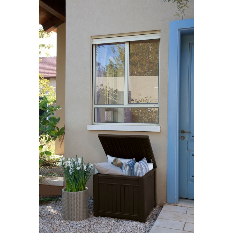 Die Cube Wood Aufbewahrungsbox ist eine universelle Lösung für Ihren Raum. Man kann sie zur Aufbewahrung von Kissen, Gartengeräte, Spielzeug, Sportgeräte, aber auch als Tisch oder Sitzgelegenheit verwendet werden. Ein schlichtes Design in Holzoptik unterstreicht das Aussehen Ihrer Terrasse oder Ihres Gartens. Die Box ist aus hochwertigem Kunststoff gefertigt, der gegen Witterungseinflüsse und UV-Strahlung beständig ist. Die Montage ist sehr einfach und schnell.
